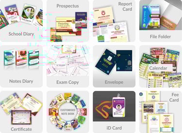 At Percept Prints, we specialize in high-quality school stationery printing, including diaries, prospectuses, exam copies, report cards, and notes diaries, ensuring every educational need is met with excellence.